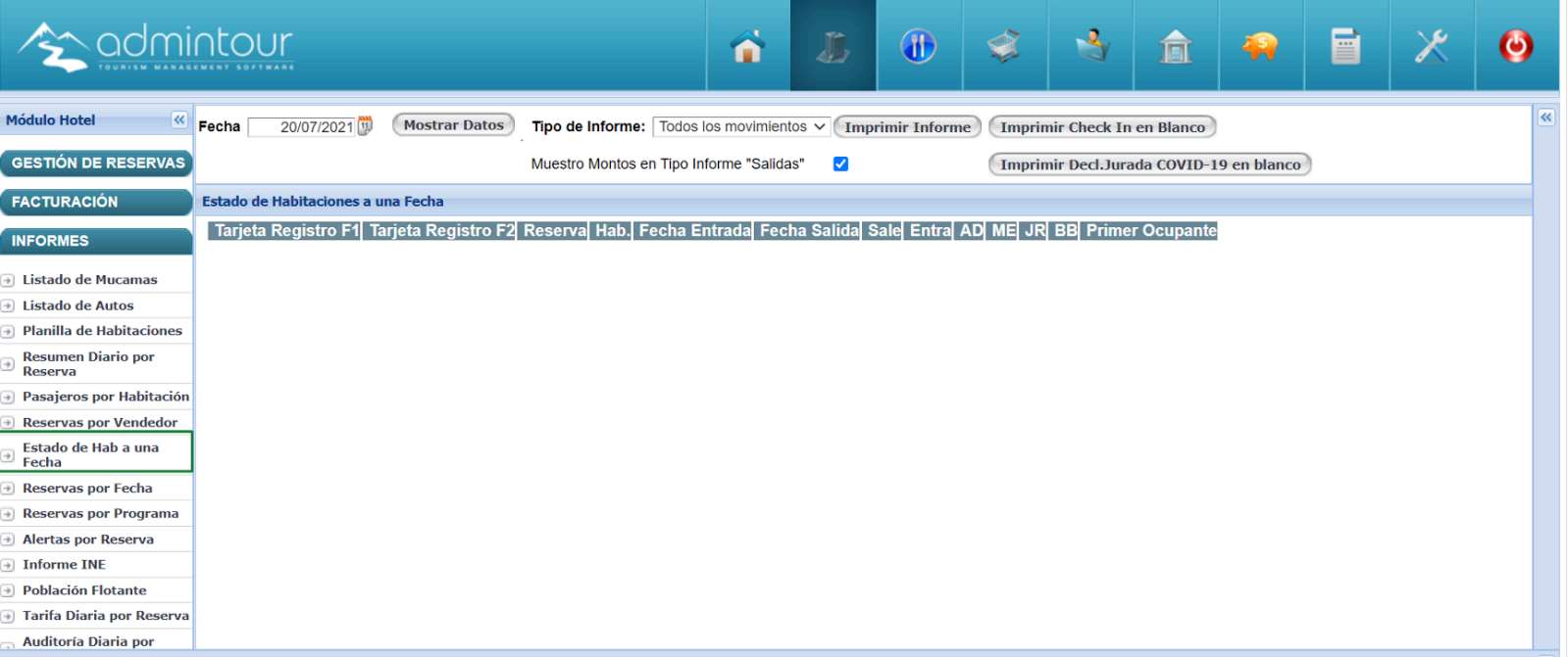 Dicho informe permite visualizar el estado del hotel a una fecha dada.