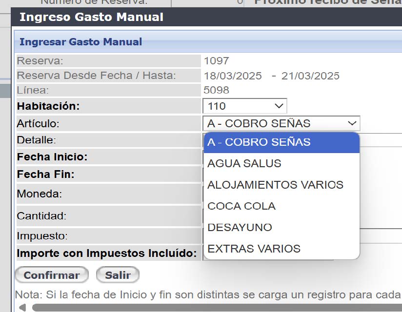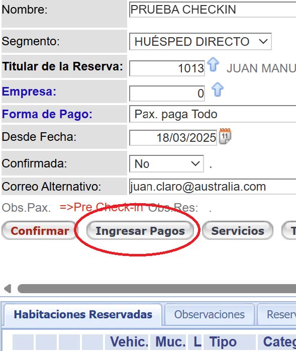 - Ingreso de una Reserva desde el Gestor de Reservas