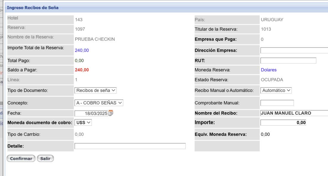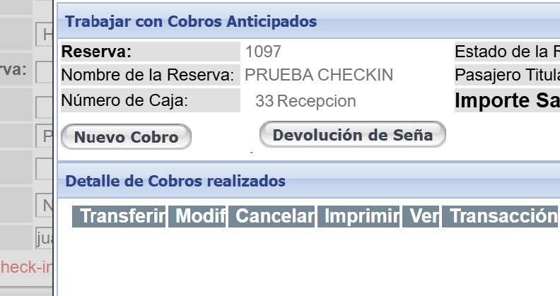 El sistema permite ingresar cobros de señas tanto en reservas sin checkin como reservas que ya están con el checkin realizado.