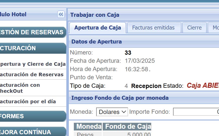 opción Apertura y Cierre de Caja.