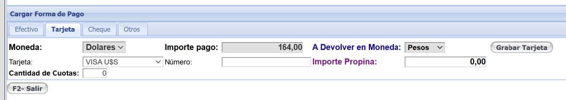 Ahí se debe presionar el botón grabar Efectivo si la forma de pago es Tarjeta se debe