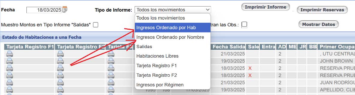 El Pms cuenta con varios informes de mucha utilidad para preparar los checkin del día.