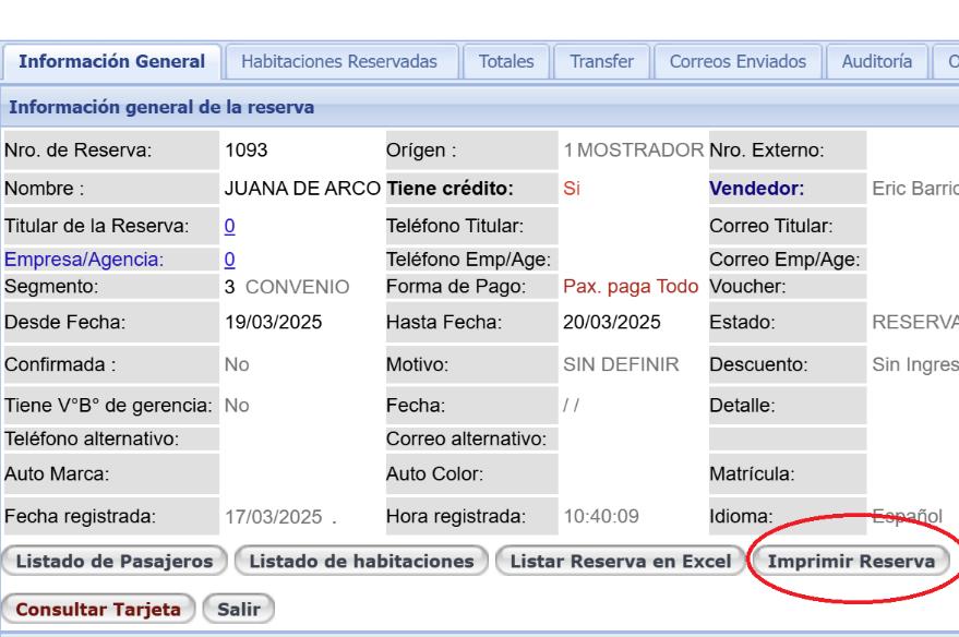- Impresión de una reserva
