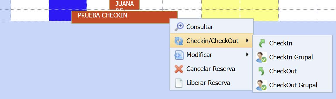 El checkin se puede realizar tanto del Gestor de Reservas como desde el Planning.