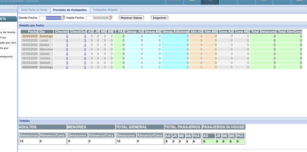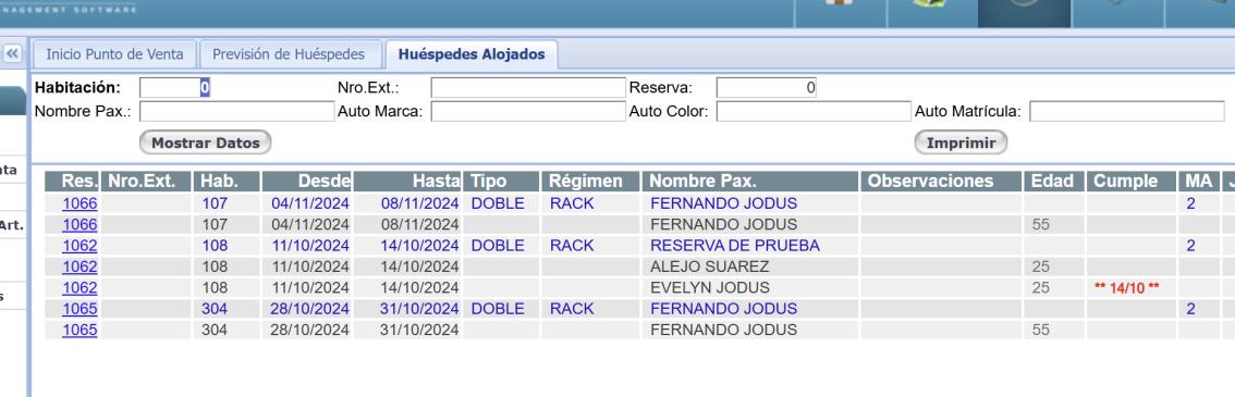 inicial de Punto de Venta existe una solapa denominada Huéspedes Alojados