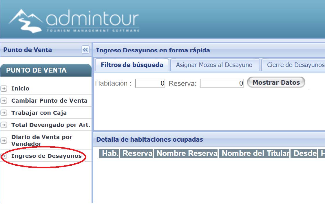 Se debe seleccionar la solapa Asignar Mozos al Desayuno como forma de abirr el