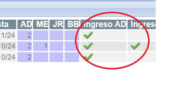 hacer clic en el icono verde de Ingreso AD o Ingreso ME por ejemplo