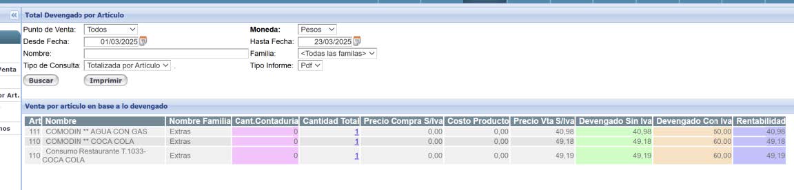 Consulta Total Devengado por artículo #
