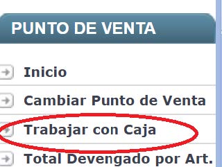 Una vez seleccionado el punto de venta se debe abrir la caja seleccionando en el menú la opción Trabajar con Caja