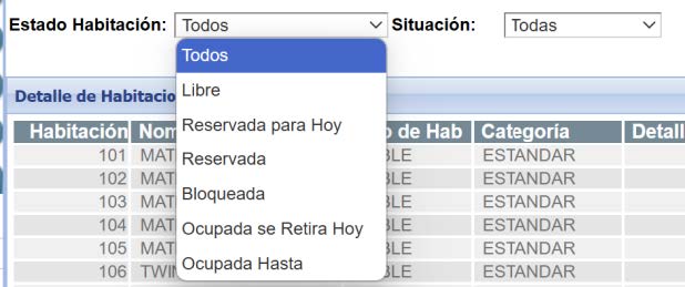 Dicha consulta permite consultar en estado de las habitaciones utilizando