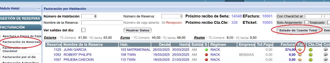 desde la pantalla de Facturación de Reservas, se puede emitir un estado de