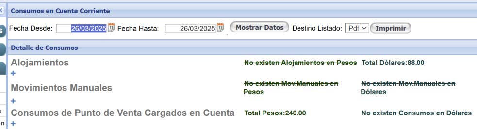 opción Consumos Cargados en Cuenta Corriente.