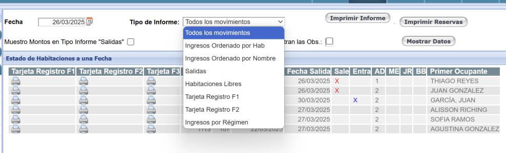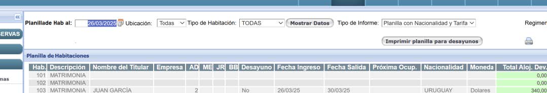Se podrán emitir un informe de lo ingresos del día y también existe la posibilidad de sacar la tarjeta de registro de cada reserva para que los huéspedes completen sus datos en el momento del ingreso.