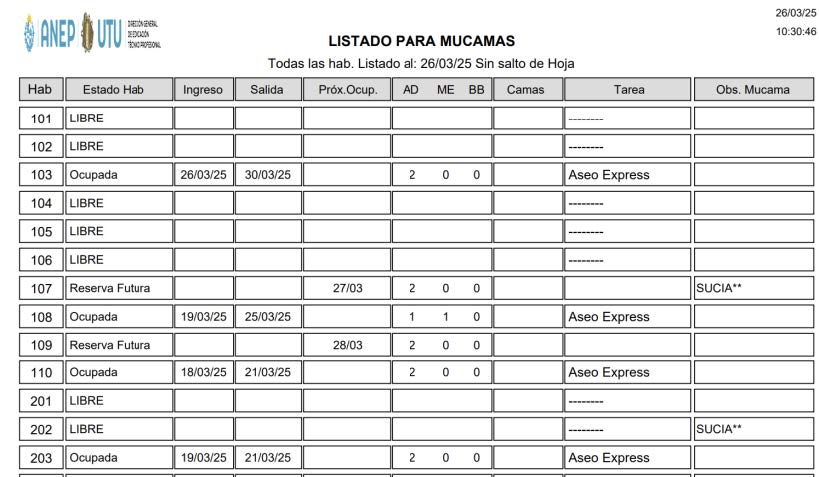 - Informe de mucamas