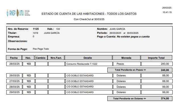 Para esto se puede emitir un listado del estado de cuenta de cada Habitación