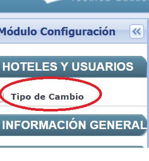 Para cargar el tipo de cambio se debe ir al módulo de configuración y ahí seleccionar Tipo de Cambio