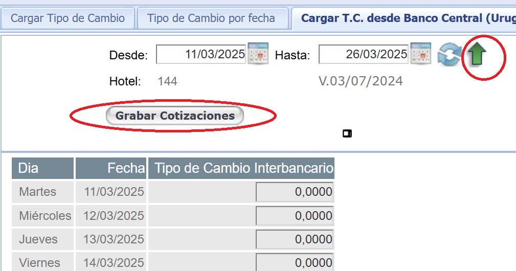 Para los hoteles de Uruguay existe una conexión directa con el Banco Central y el tipo de cambio Interbancario se puede descargar en forma directa.