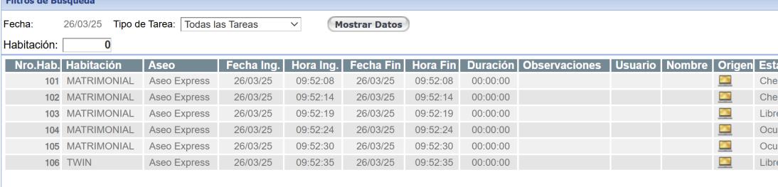 Todas las mañana se recomiendo emitir un informe de todas las habitaciones que se