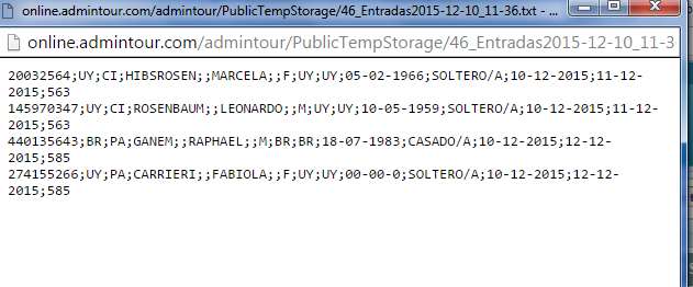 Admintour permite generar un archivo en formato CSV en el formato solicitado por Interpol con el fin de cargarlo en forma automática en la página del Ministerio del Interior sin necesidad de tener que volver a digitar todos los pasajeros.